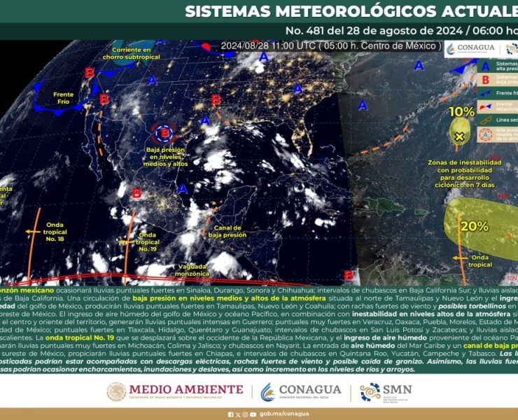 Asimismo luvias muy fuertes en Jalisco, Colima, Michoacán, Edomex, CDMX, Morelos, Puebla Veracruz y Oaxaca…