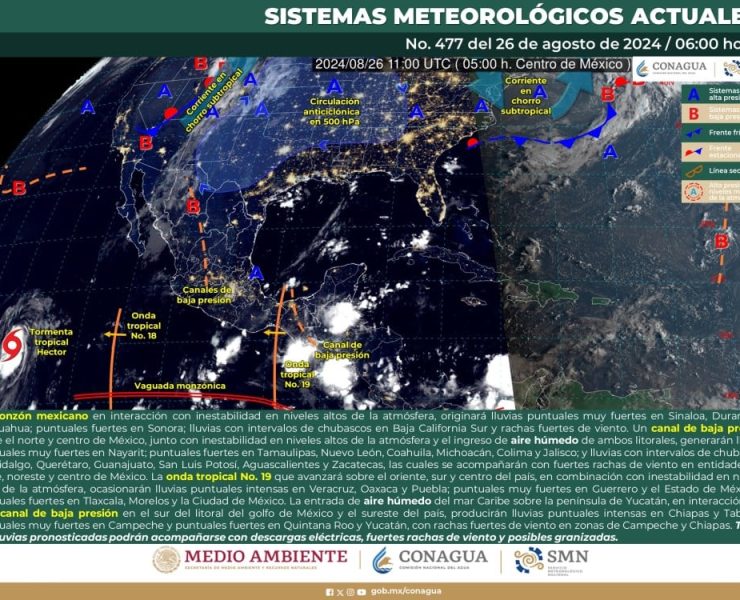 El Servicio Meteorológico Nacional (SMN), prevé que para hoy, el monzón mexicano en interacción con inestabilidad en…