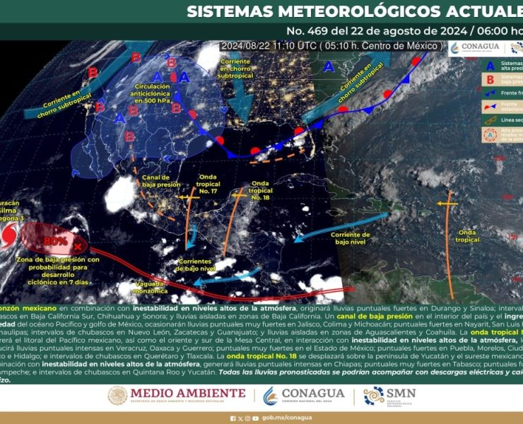 El Servicio Meteorológico Nacional (SMN), prevé que para hoy, el monzón mexicano en combinación con inestabilidad en…
