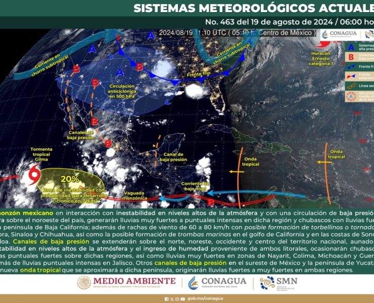 El Servicio Meteorológico Nacional (SMN), prevé que para este día, monzón mexicano en interacción con inestabilidad…