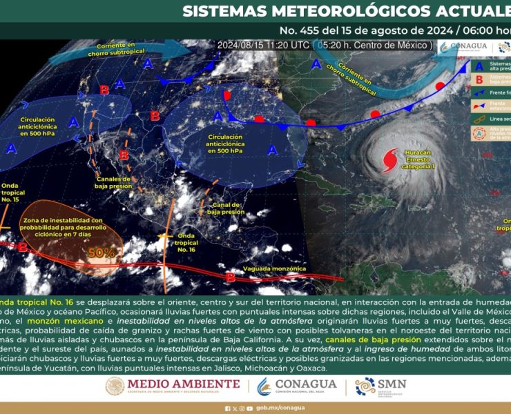 El SMN prevé para hoy que, onda tropical No. 16 se desplazará sobre el oriente, centro…