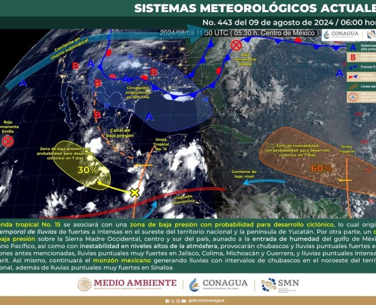 El Servicio Meteorológico Nacional |SMN) prevé para este día, la onda tropical No. 15 se extenderá sobre…