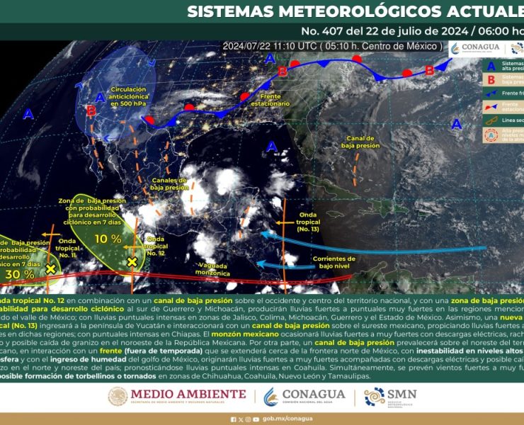 El Servicio Meteorológico Nacional (SMN), prevé que para este día, la onda tropical No. 12 en…