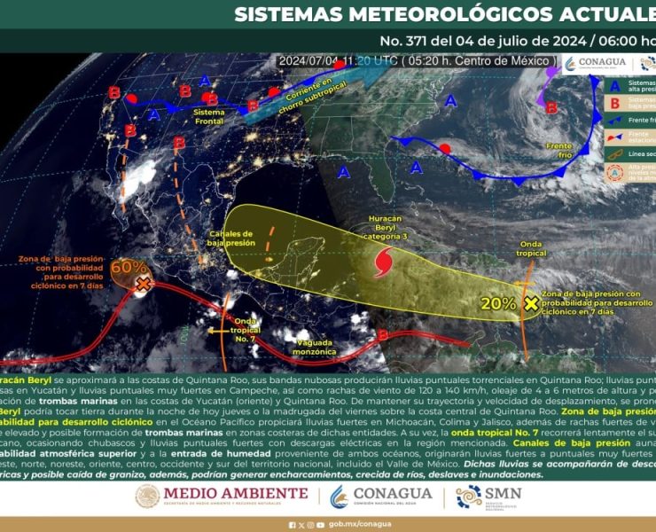El huracán “Beryl” está en curso hacia territorio mexicano, con especial atención en los municipios…