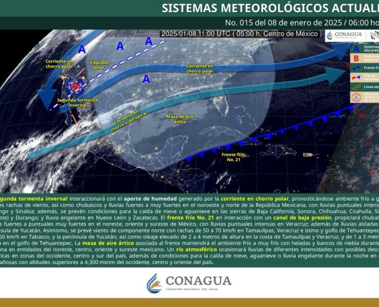 La interacción entre la segunda tormenta invernal, el frente frío número 21 y un río…
