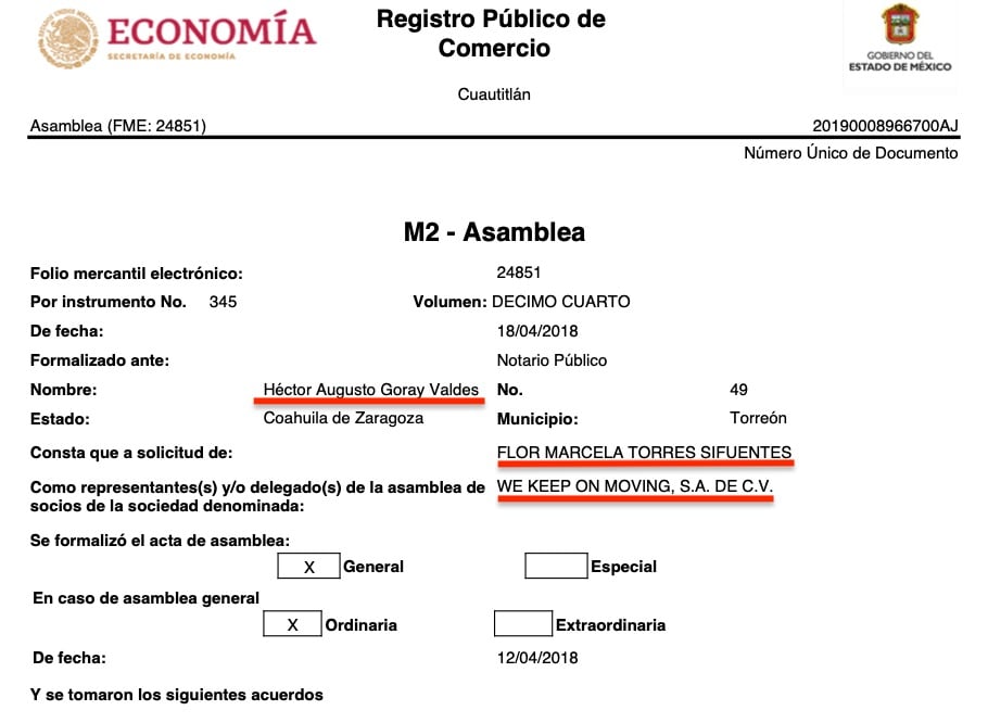 No era casual: en abril de 2018 se habían revelado en el consejo de administración de We Keep On Moving, como apoderados, Francisco Núñez Kaufmann, Ana Karen Fierro Medina y Javier González Ruiz, además de Flor Marcela Torres Sifuentes.