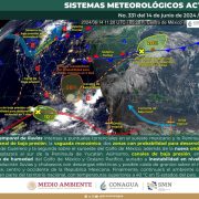 El Servicio Meteorológico Nacional (SMN) de México ha emitido una alerta sobre un temporal de lluvias intensas a torrenciales que afectará el oriente, sureste mexicano y la península de Yucatán del 13 al 20 de junio. Este fenómeno es provocado por la interacción de un canal de baja presión, la vaguada monzónica y dos zonas de baja presión con potencial ciclónico.
