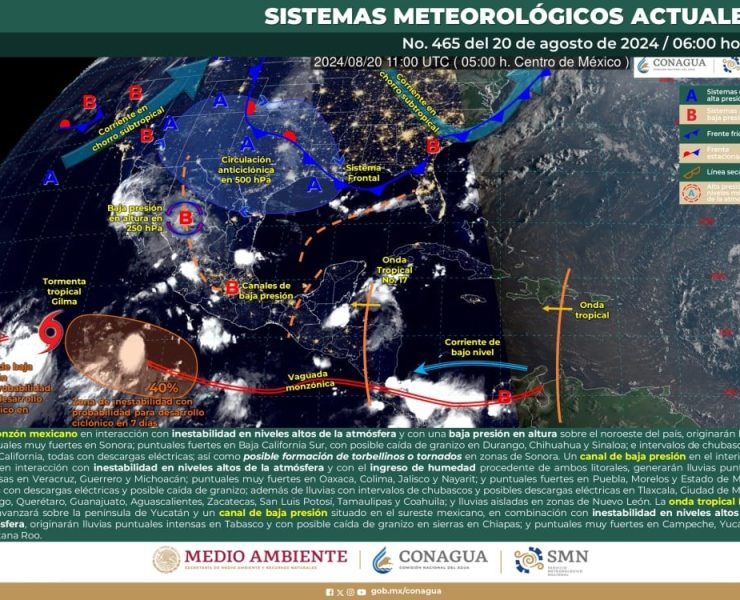 El Servicio Meteorológico Nacional (SMN), prevé que para hoy, el monzón mexicano en interacción con inestabilidad en…